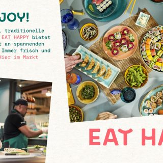 Ob handgemachtes Sushi, traditionelle Desserts oder Snacks – EAT HAPPY bietet dir eine große Vielfalt an spannenden asiatischen Gerichten. Immer frisch und mit Liebe zubereitet. Hier im Markt erhältlich.